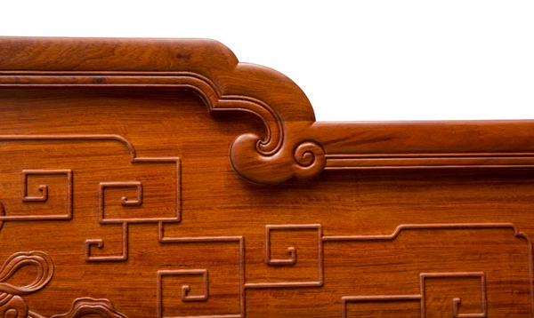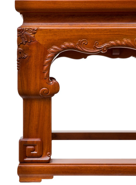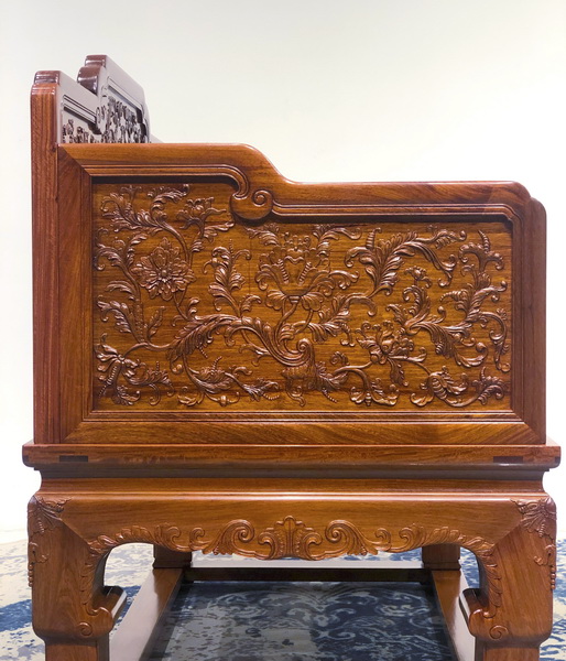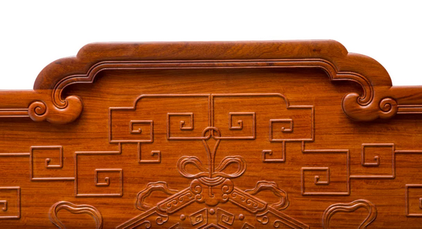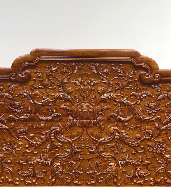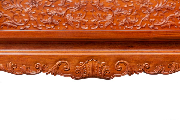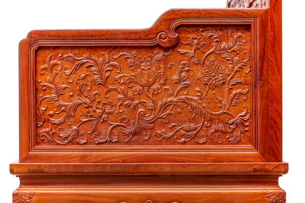 “西番蓮”在西方紋樣中的特殊地位,就好像是中國的牡丹。傳入我國以后很快被廣泛應(yīng)用,這不僅是因?yàn)槲鞣張D案造型優(yōu)美,而且更重要的是這種紋樣的適應(yīng)性比牡丹花紋樣更強(qiáng),所以很快被應(yīng)用于各類紅木雕家具。