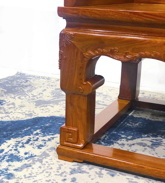 紅橋紅此件雕西番蓮“慶壽”紋寶座,原款為【恭王府舊藏 清乾隆 紫檀雕西番蓮“慶壽”紋寶座】,選材緬甸花梨(學(xué)名:大果紫檀)。