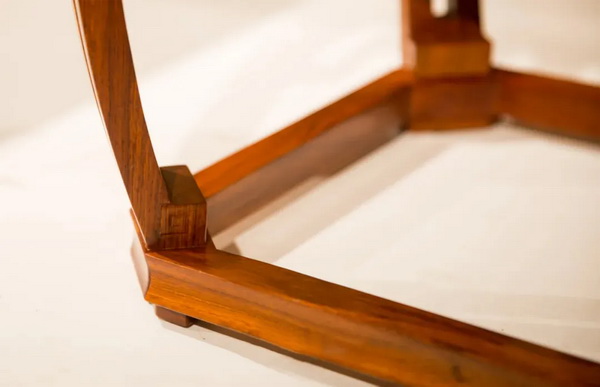 全身簡素,只靠各部件之間比例的勻稱而獲得一種簡潔明快、剛勁有力的藝術效果。這在坐凳中是一件匠心獨運的作品。美好的比例;變化中求統一;曲線富于張力;裝飾繁簡相宜;充分注重發揮木材固有的色澤與紋理;造型與功能相一致。
