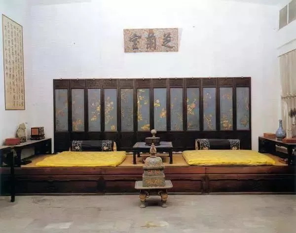 乾隆皇帝當(dāng)皇子時居住并在此完婚的重華宮東暖閣,炕的兩側(cè)靠墻放置的即為炕案
