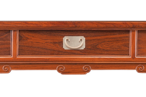 案子通長2米10,案面攢框鑲獨板,紋理優(yōu)美,一氣呵成,宛若一幅天然的山水畫。