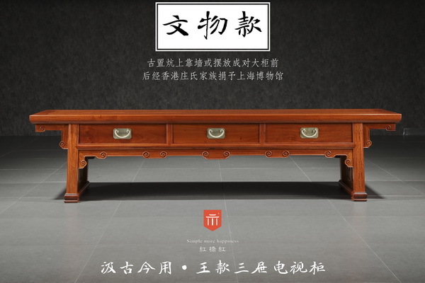 兩百多年后,當(dāng)這件炕案原汁原貌穿越到今天,與現(xiàn)代生活方式結(jié)合后,卻有了另一種全新的功能——電視柜。